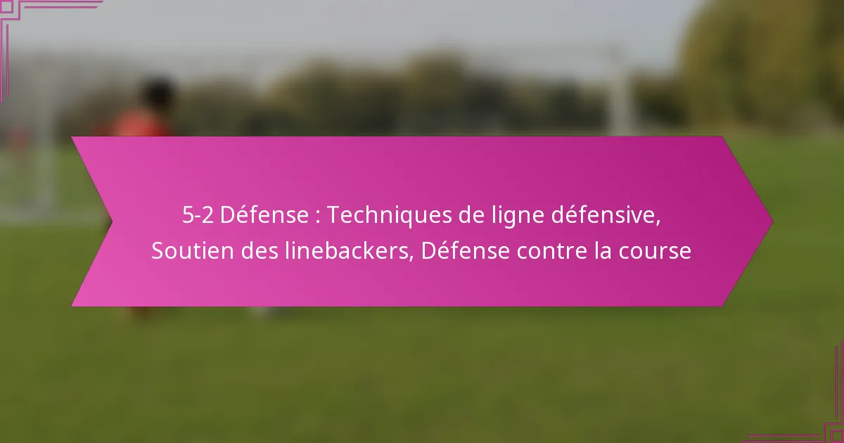 La défense 5-2 est une formation stratégique conçue pour améliorer la défense contre la course tout en offrant une adaptabilité face à diverses actions offensives. En utilisant cinq joueurs de ligne défensive et deux linebackers, cette configuration assure un contrôle efficace des espaces et permet aux linebackers de fournir un soutien crucial. Maîtriser des techniques spécifiques de ligne défensive est essentiel pour engager les bloqueurs et optimiser la performance défensive globale.