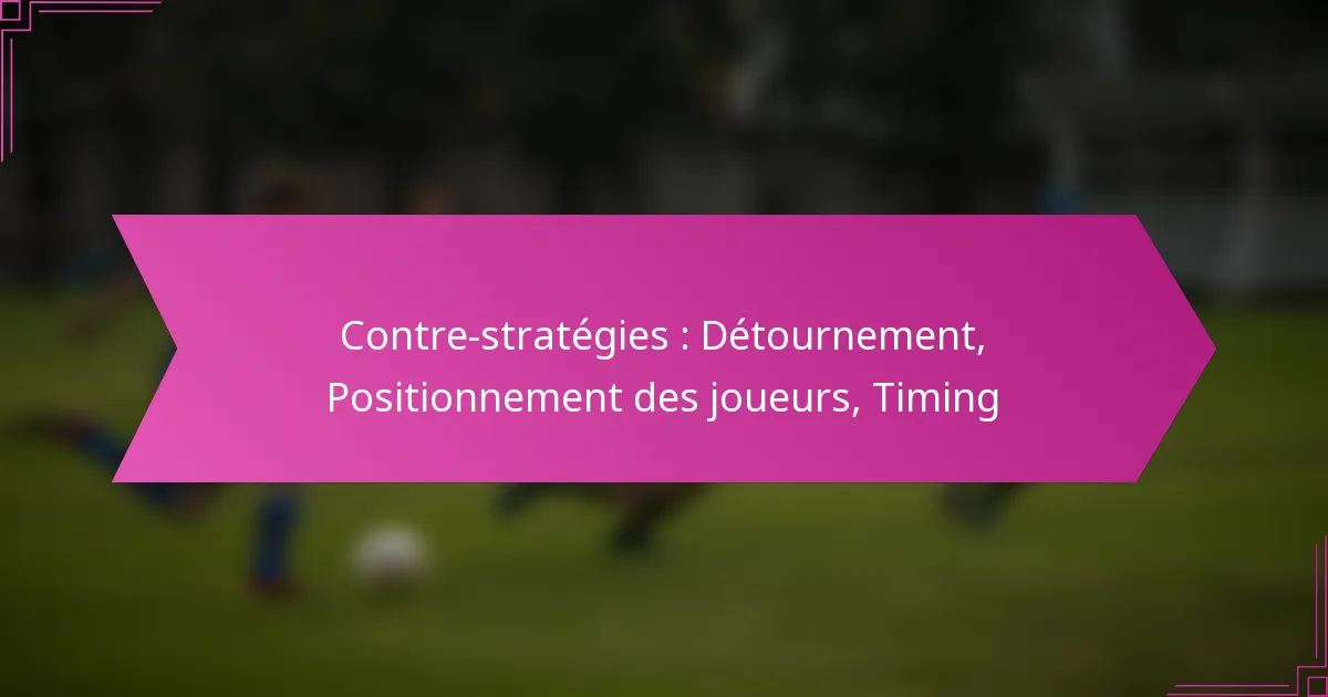 Contre-stratégies : Détournement, Positionnement des joueurs, Timing