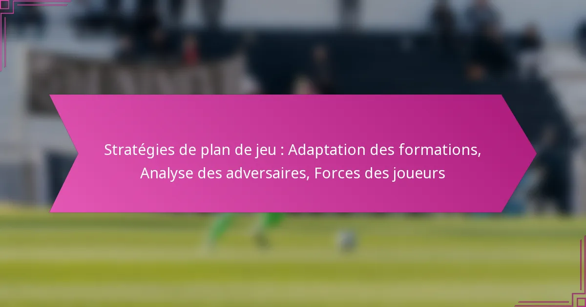 Les stratégies de plan de jeu sont essentielles pour réussir dans les sports compétitifs, en se concentrant sur l’adaptation des formations, l’analyse des adversaires et l’exploitation des forces des joueurs. En comprenant les principes de conception et en évaluant systématiquement les capacités de l’équipe et les faiblesses des rivaux, les entraîneurs peuvent créer des stratégies efficaces qui améliorent la performance. Cette approche globale garantit que les équipes sont bien préparées à s’adapter et à prospérer dans diverses situations de jeu.