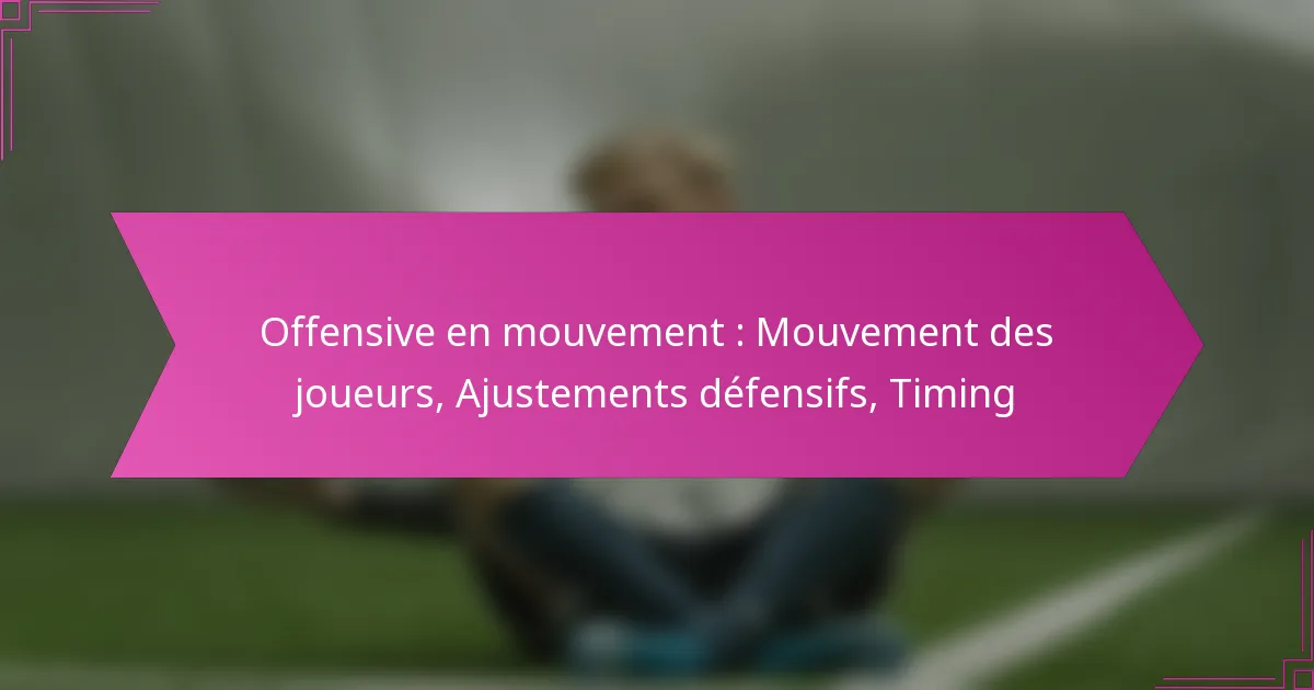 Offensive en mouvement : Mouvement des joueurs, Ajustements défensifs, Timing